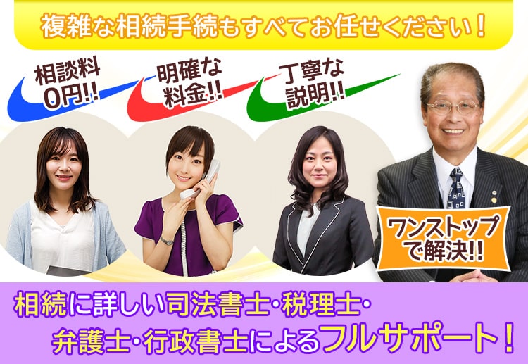 例えば、不動産の相続登記であれば司法書士、代理交渉や裁判手続きが発生する相続案件であれば弁護士にご相談ください。